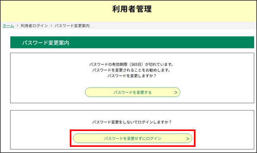 パスワードの有効期限切れで 《パスワード変更案内画面》 が表示された場合は、【手順4】へ進んでください。