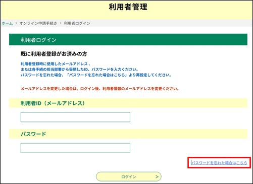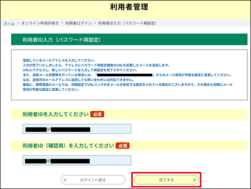 《利用者ID入力(パスワード再設定)画面》 が表示されます。