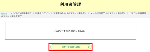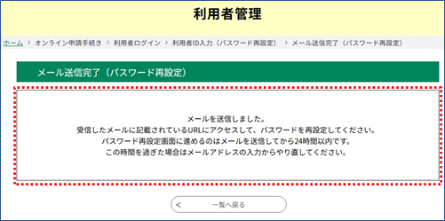 《メール送信完了(パスワード再設定)画面》 が表示されます。