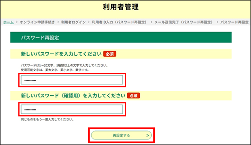 | 利用者ID(確認用) | 確認用に、上記の利用者IDを再度入力してください。 |