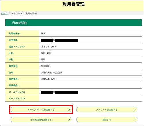 本サービスにおける利用者ID として設定されたメールアドレスに変更があった場合は、至急この変更を行うようにしてください。