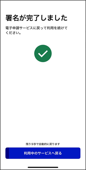 電子署名手続きの申込完了