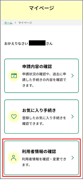 「利用者情報の確認」をタップします。