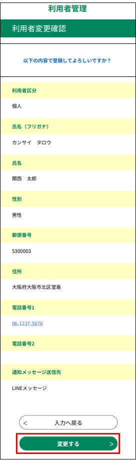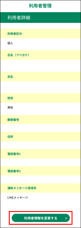 この操作によって、 氏名、住所などの利用者情報の変更が行えます。