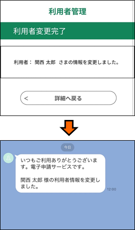 LINEメッセージで【利用者情報お知らせメール】が送られます。ご確認ください。