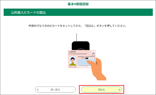 ただし、基本4情報読取が必要な手続きでは基本4情報読取時と同じ電子証明書の読込み画面が表示されますので、「手順 9」へ進んでください。