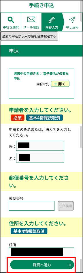 なお、基本4情報読取が有効な手続きでは本画面は表示されません。