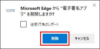 《Microsoft Edge から”電子署名アプリ”を削除しますか?》画面が表示されるので、「削除」ボタンをクリックします。