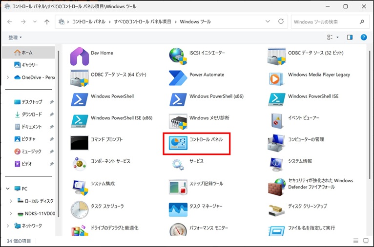 ③ 《Windowsツール》画面が表示されますので、「コントロールパネル」をダブルクリックします。
