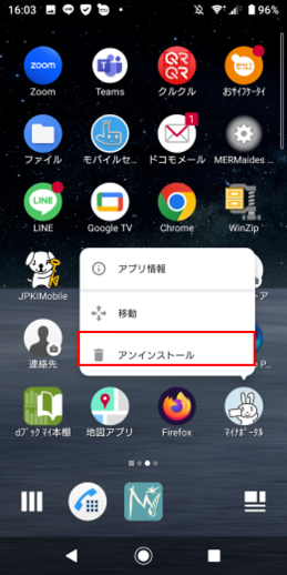 マイナポータルアプリのアンインストール