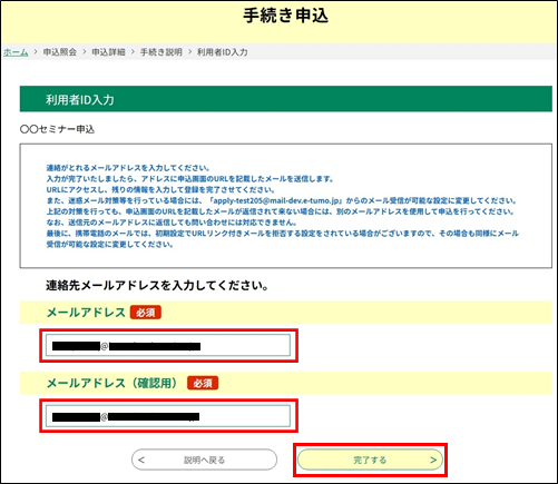 連絡先となるメールアドレスを入力してください。 ※申込時に登録したメールアドレスが初期表示されます。 |