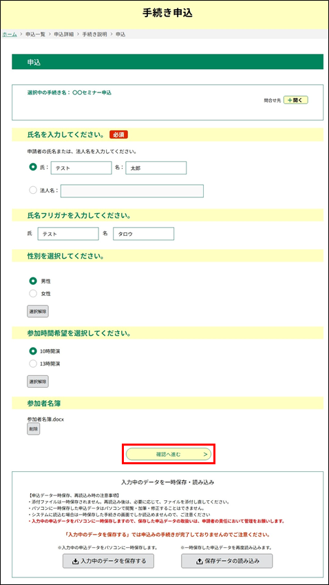 ※手続きによっては、《申込画面》で名簿等の添付ファイルを設定するものもあります。
