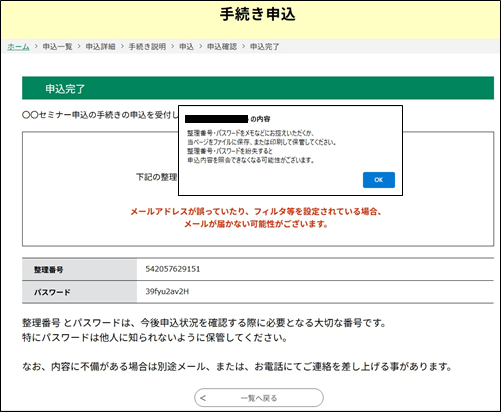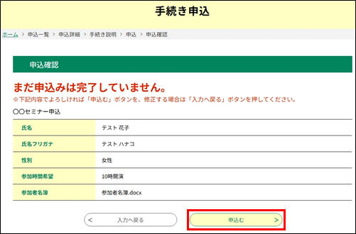《申込確認画面》 が表示されます。