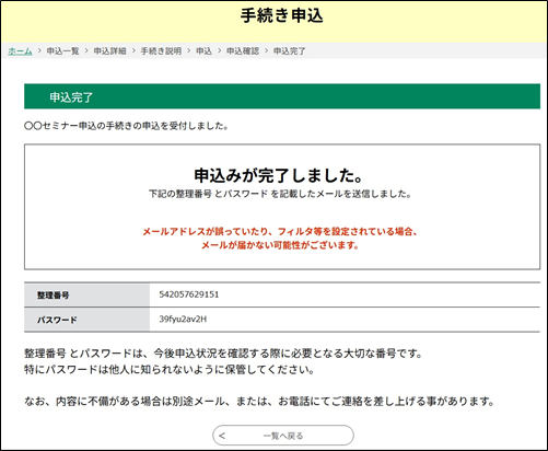 申込状況を確認する場合は、【申請状況確認】 メニューへ進んでください。 (詳細は、『 申込照会認証 』を参照してください。)
