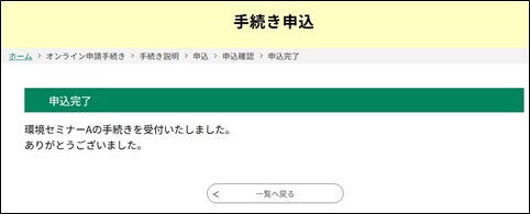《申込完了画面》 が表示されます。