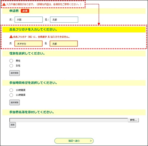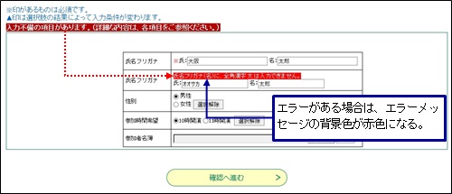 <入力エラーの表示>(画面デザインを使用している場合)