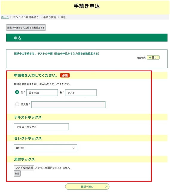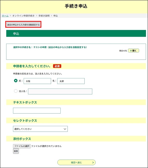 ●同じ手続きの過去に申請した入力内容が自動で設定されます。