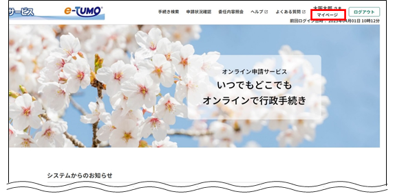 画面上部右にある【マイページ】をクリックします。