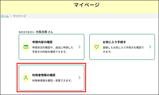 利用者情報の確認」をクリックします。