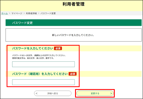 新しいパスワードを入力し、  変更する  をクリックしてください。