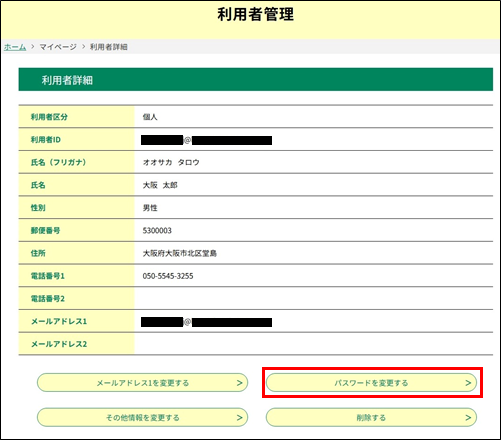 《利用者詳細画面》 が表示されます。