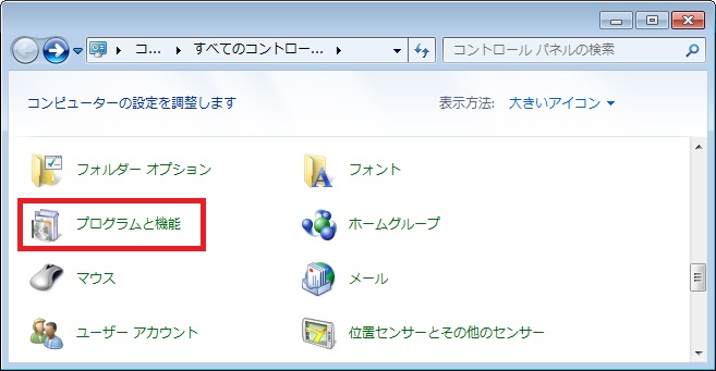 コントロールパネルから、[プログラムと機能]をクリックします。