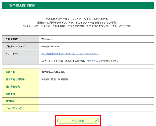 「申込へ進む」ボタンをクリックして、申込操作を進めます。