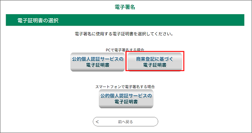 「商業登記に基づく電子証明書」ボタンをクリックしてください。
