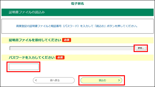 電子証明書の読込み