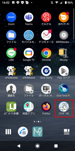 「マイナポータル」アプリを長押しします。
