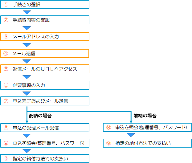 審査が行われて申込が受理されると 【受理通知メール】 が送られてきますので、それから 【手順13】 へ進んで支払いを行います。