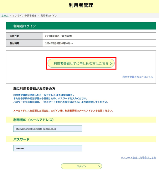 ●ログインしないで申し込む場合