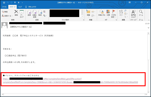 <連絡先アドレス確認メールの URL にアクセスする際の補足>