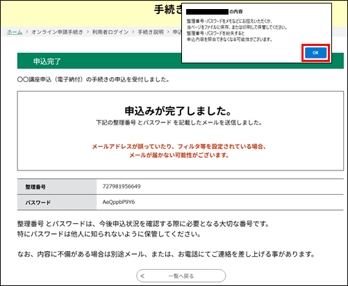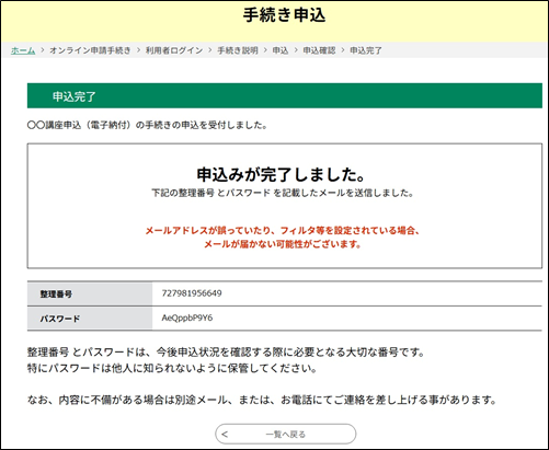 ※大切なものですので、画面を保存するなど、控えを取られることをお勧めします。