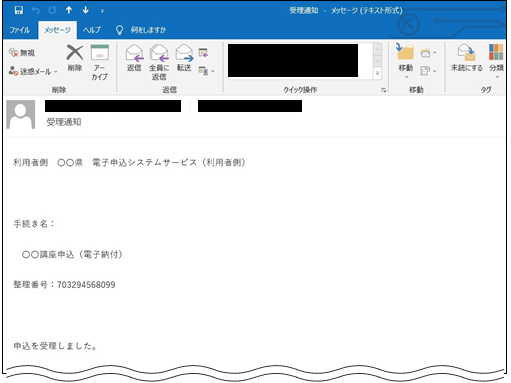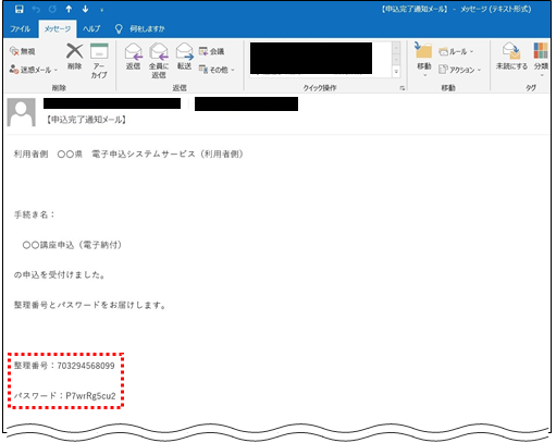 これらは申込が完了した際に発行されており、【申込完了通知メール】の本文に記載されています。