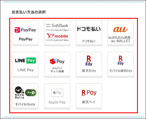 決済方法選択画面が表示されます。