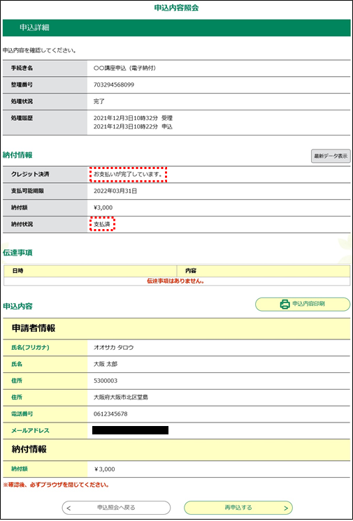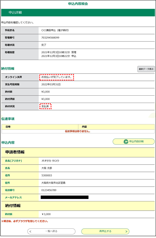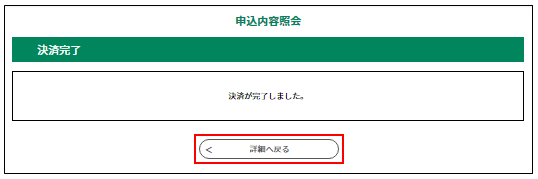 ③ 決済が完了すると、《申込詳細画面》に戻ります。
