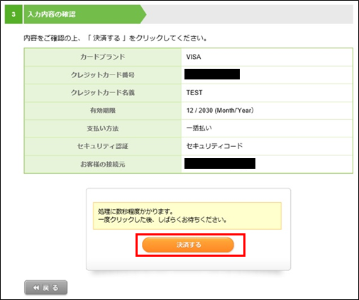 ③ 内容を確認して「決済する」ボタンをクリックします。