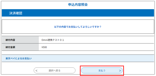 ④ 内容を確認して「支払う」ボタンをクリックします。