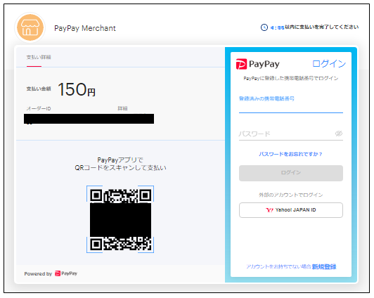 かPayPayにログインしてお支払いください。