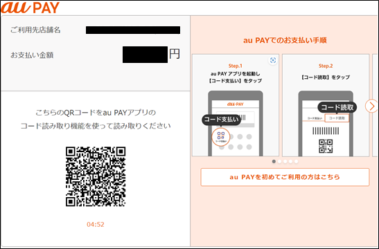 PCの場合は、auPAYアプリでQRコードをスキャンしてお支払いください。