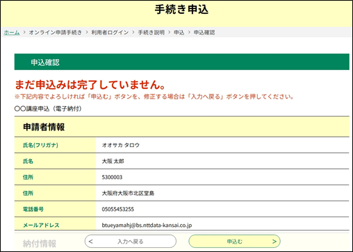 「入力内容の確認」画面が表示されます。