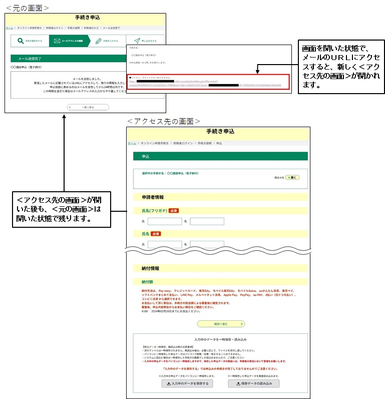 それまで操作していた本サービスの元の画面は、必要なければ閉じてください。