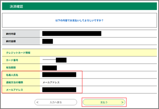 ⑦ 内容を確認して「支払う」ボタンをクリックします。