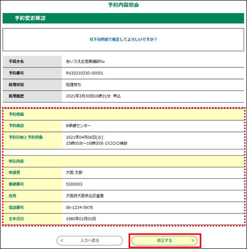 ※予約日時を変更した場合は、仮予約の有効時間までに修正を完了してください。