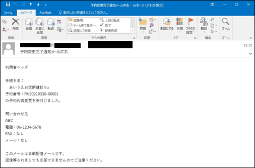 【予約変更完了通知メール】が送られます。ご確認ください。