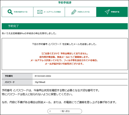 《予約完了画面》が表示されます。