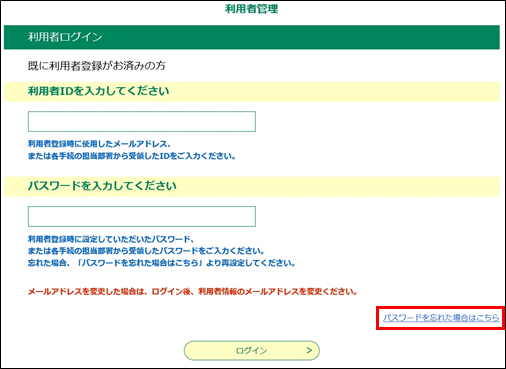 [パスワードを忘れた場合はこちら]をクリックしてください。