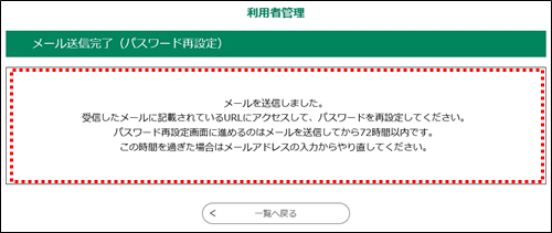登録されているメールアドレスへ、《パスワード再設定画面》へのURLを記載したメールが送られます。