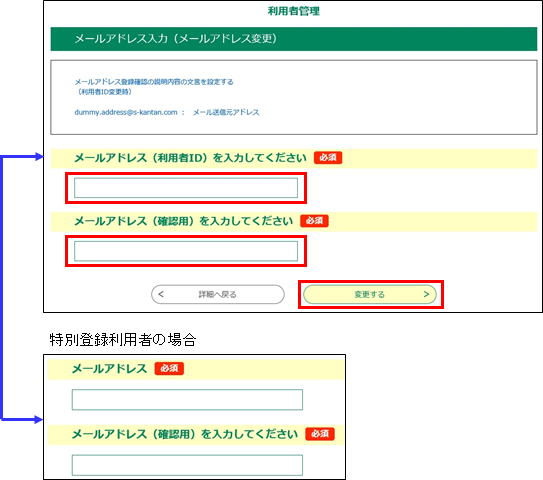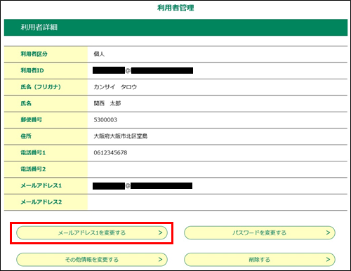 この操作によって、[メールアドレス(利用者ID)]の変更が行えます。